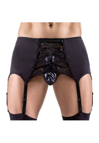 Questo sospensorio in similpelle e rete opaca combina estetica fetish e funzionalità con il suo tessuto a rete elasticizzato e gli anelli metallici di alta qualità.