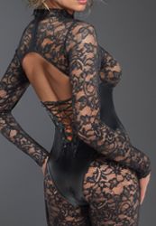 Era ολόσωμη φόρμα από δαντέλα και δερματίνη