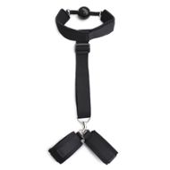Para melhorar os seus serões de fetiche, eis o kit decinta de imobilização com algemas e mordaça com bola, que o deixará sem palavras depois de o experimentar.