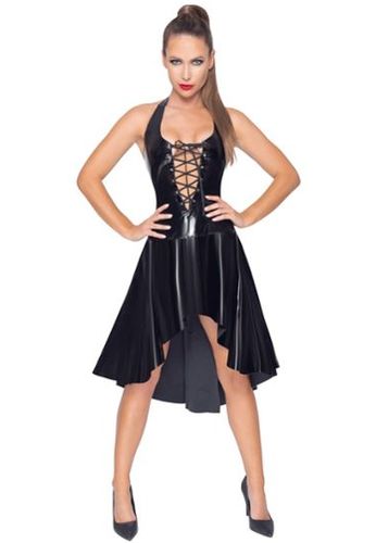 Feticismo sì, ma con eleganza e design. Questo abito asimmetrico in lacca lucida è in grado di valorizzare qualsiasi serata.