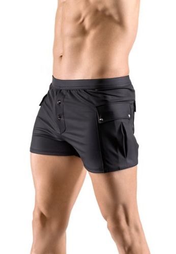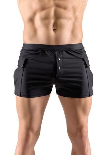 Afritsbare shorts met wassing van stretch imitatieleer en visnet aan de zijkanten.