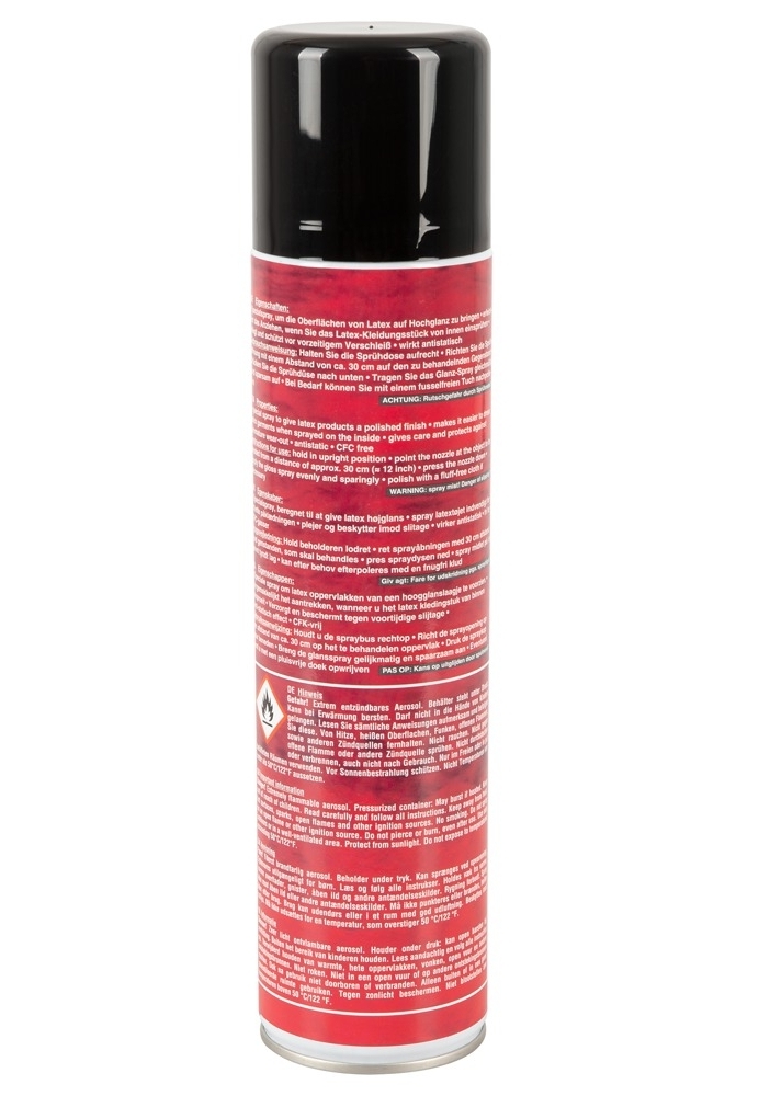 Behoud de glans van je latex en vinyl outfits met deze professionele siliconenspray. Hoogwaardige bescherming die een intense glans en een lange levensduur garandeert voor je kostbaarste fetisj items.