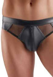 Een slip met vinyleffect om op te vallen, met een rits aan de voorkant over een ondoorzichtige zak, visnet aan de voorkant en een nauwsluitend model. Comfortabel, elastisch en geknipt voor een elegante fetish-look.