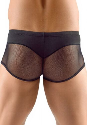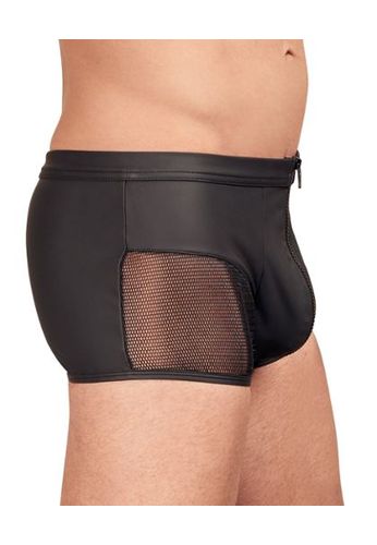 Sheer visnet boxershort met stijlvolle matte details, verstelbare dijbanden en ondoorzichtige zak.