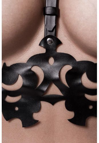 Met de kettingen die de blote borst omlijsten, de stimulerende kruisbanden en de bijgeleverde accessoires (halsband en handboeien) biedt deze set een complete en opwindende bondage-ervaring.