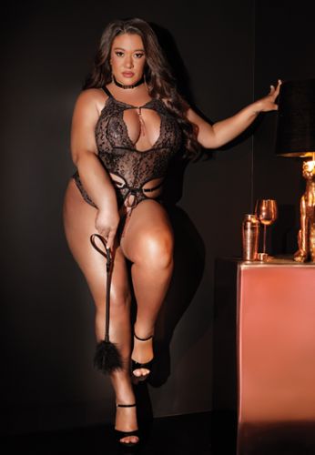 Een zwarte high-waist teddy van kant die elegantie en verleiding combineert, met halterstrik en een super stretchy pasvorm voor extra comfort. Een statement piece dat de silhouet mooi laat uitkomen en meteen een onweerstaanbare vibe geeft.