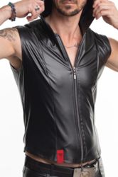 Dit vest zonder mouwen Dario belichaamt de moderne fetisj-elegantie. Gemaakt van elastische matte wetlook, biedt het een sensuele en rijke textuur die onmiddellijk fascineert. Het vegan similicuir combineert kwaliteit, duurzaamheid en esthetische waardering.
