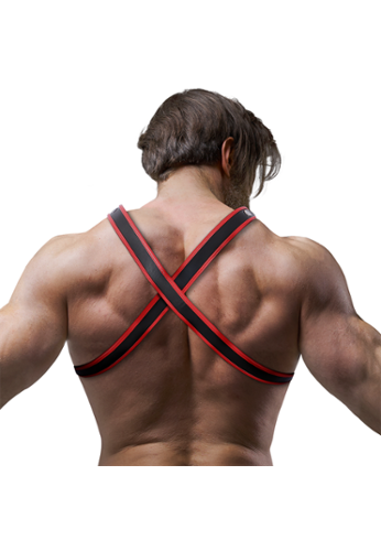 Um arnês sport para homem em neoprene flexível, criado para valorizar o torso com linhas limpas e seguras. Tamanho único e totalmente ajustável com correias múltiplas para um fit confortável e premium.