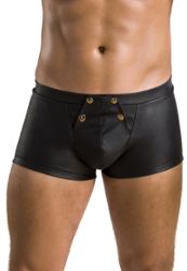 Boxershorts in Lederoptik, die sehr dehnbar sind und Ihre Vorzüge hervorheben werden. Mit Druckknopföffnung vorne.