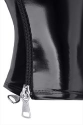 Tem um fecho de correr na parte de trás. Nada de novo nas máscaras... e ainda.... A sua caraterística extremamente interessante e um pouco assustadora é o facto de o fecho poder ser fechado com uma chave, impossibilitando a abertura e a remoção da máscara.