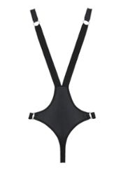 Elementi metallici di alta qualità adornano questo capo progettato per le sessioni BDSM più intense e per i look fetish più decisi.