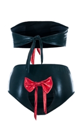 This Erotix II set includes high faux-leather panties with a red bow on the buttocks, an adjustable top-gandeau with a red bow on the back. And a matching wolf.