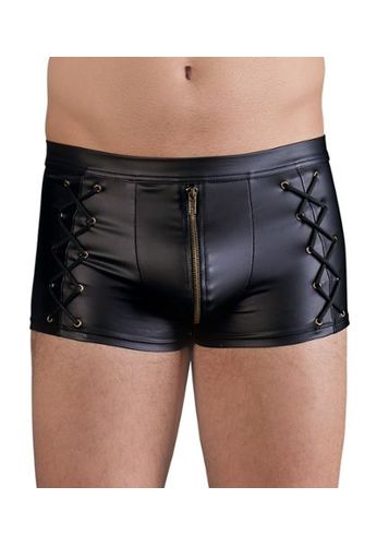 Esta cueca ajustada combina estilo fetichista com funcionalidade. Preta fosca com detalhes prateados, zíper oculto na virilha. De um lado, anéis e 3 correntes removíveis com mosquetões, do outro, bolso cargo com zíper. Macia e elástica com cintura elástica revestida para máximo conforto.