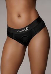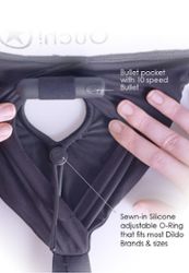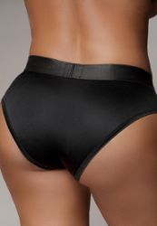 Dankzij het unieke ronde ringsysteem past bijna elke dildo in deze boxer-harnas zonder dat je extra ringen nodig hebt.