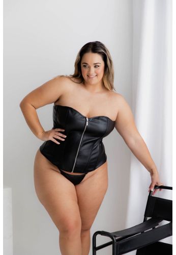 Κυριαρχήστε με στυλ με αυτό το μπουστάκι Vixen από ψεύτικο δέρμα. Ένα κομμάτι εσωρούχων BDSM που ενισχύει τη σιλουέτα σας, ενώ ταυτόχρονα επιβεβαιώνει τη δύναμή σας. Περιλαμβάνεται το αντίστοιχο στρινγκ.