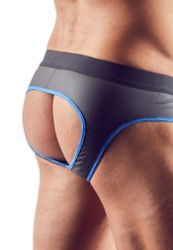 Um jockstrap em look néopreno/borracha mate ultra sexy e muito confortável. Com fecho frontal para acesso imediato e um corte com nádegas à mostra para liberdade total. O material combina brilho e mate para um efeito visual cativante.