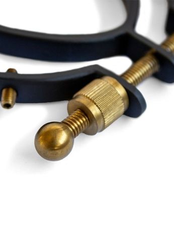 A pinça Pussy Clamp 2.0 com tachas pretas/douradas redefine a elegância no mundo das pinças íntimas com os seus acabamentos premium em preto mate e dourado escovado.