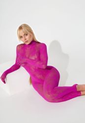 Este bodystocking cor-de-rosa fúcsia é um fato de fetiche invulgar e, acima de tudo, muito original.