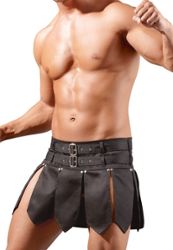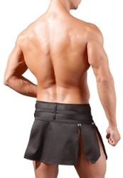 Para um look gladiador completo, combine com um arnês e acessórios pretos. Também pode usá-la com um jockstrap ou boxer fetiche para um contraste muito visual.
