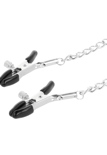 Explore novas sensações com este ousado colar do prazer, que liga elegantemente o seu pescoço com pinças ajustáveis para os mamilos.