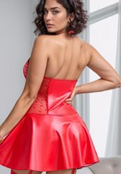 Para uma sessão de dominação, combine este vestido com botas de vinil até à coxa e luvas compridas a condizer para um irresistível ar de autoridade. Complete-o com um chicote ou um chicote da nossa coleção para afirmar a sua posição dominante. Para um visual elegantemente submisso, opte por um colar de trela e meias de rede para mostrar as ligas. Acessórios metálicos, como correntes leves ou clipes decorativos, darão uma dimensão visual extra que intensificará a atmosfera do seu jogo de papéis. Lembre-se de que a atitude é tão importante quanto a roupa - use este vestido com a confiança que ele inspira, quer esteja num papel dominante ou submisso.