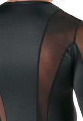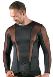 O ajuste fino molda-se perfeitamente ao tronco masculino sem comprimir. Zonas transparentes e opacas criam um contraste marcante que realça os músculos. Um look que não passa despercebido.